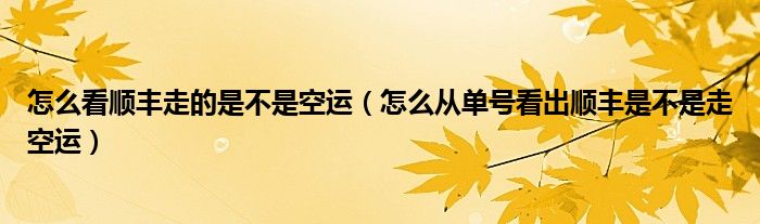 大家好,小生來(lái)為大家講解下。怎么看順豐走的是不是空運(yùn),怎么從單號(hào)看出順豐是不是走空運(yùn)很多人還不知道,現(xiàn)在讓我們一起來(lái)看看吧!