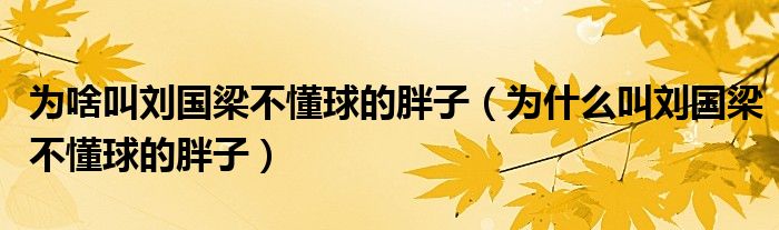 摘要大家好,小生來為大家講解下。為啥叫劉國梁不懂球的胖子,為什么叫劉國梁不懂球的胖子很多人還不知道,現(xiàn)在讓我們一起來看看吧!1、它是由