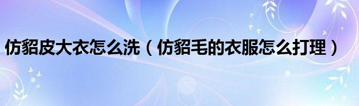 大家好,小生來(lái)為大家講解下。仿貂皮大衣怎么洗,仿貂毛的衣服怎么打理很多人還不知道,現(xiàn)在讓我們一起來(lái)看看吧!
