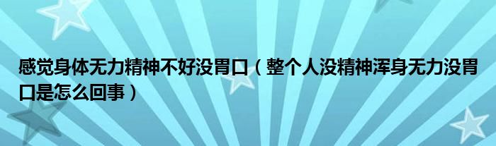 大家好,知識(shí)小編來為大家解答以上的問題。感覺身體無力精神不好沒胃口,整個(gè)人沒精神渾身無力沒胃口是怎么回事很多人還不知道,現(xiàn)在讓我們一起來看看吧!