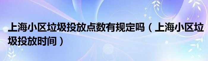 大家好,小生來為大家講解下。上海小區(qū)垃圾投放點數(shù)有規(guī)定嗎,上海小區(qū)垃圾投放時間很多人還不知道,現(xiàn)在讓我們一起來看看吧!