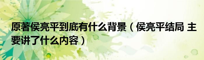 摘要 大家好,小生來為大家講解下。原著侯亮平到底有什么背景,侯亮平結(jié)局 主要講了什么內(nèi)容很多人還不知道,現(xiàn)在讓我們一起來看看吧!1、侯亮