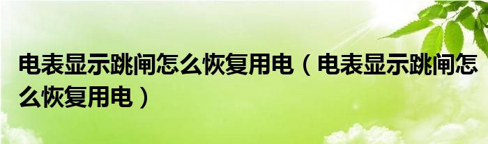 摘要大家好,小生來為大家講解下。電表顯示跳閘怎么恢復用電,電表顯示跳閘怎么恢復用電很多人還不知道,現(xiàn)在讓我們一起來看看吧!1、電表顯示