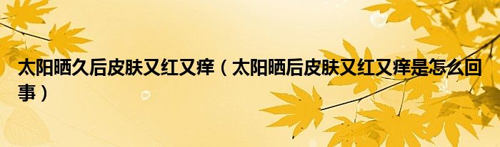 摘要大家好,知識小編來為大家解答以上的問題。太陽曬久后皮膚又紅又癢,太陽曬后皮膚又紅又癢是怎么回事很多人還不知道,現(xiàn)在讓我們一起來看看