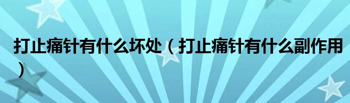 大家好,知識(shí)小編來(lái)為大家解答以上的問(wèn)題。打止痛針有什么壞處,打止痛針有什么副作用很多人還不知道,現(xiàn)在讓我們一起來(lái)看看吧!