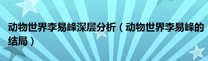 大家好,小生來(lái)為大家講解下。動(dòng)物世界李易峰深層分析,動(dòng)物世界李易峰的結(jié)局很多人還不知道,現(xiàn)在讓我們一起來(lái)看看吧!