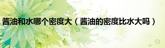 大家好,小生來為大家講解下。醬油和水哪個密度大,醬油的密度比水大嗎很多人還不知道,現(xiàn)在讓我們一起來看看吧!