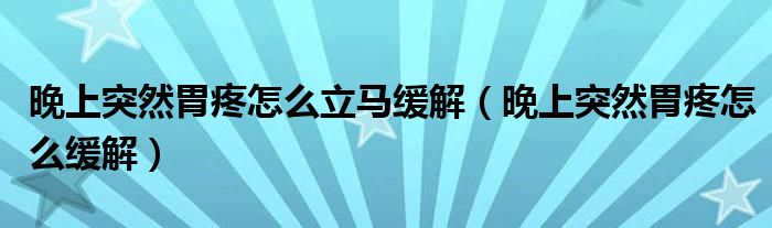 摘要大家好,知識小編來為大家解答以上的問題。晚上突然胃疼怎么立馬緩解,晚上突然胃疼怎么緩解很多人還不知道,現(xiàn)在讓我們一起來看看吧!晚上