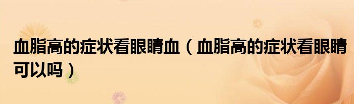 大家好,知識小編來為大家解答以上的問題。血脂高的癥狀看眼睛血,血脂高的癥狀看眼睛可以嗎很多人還不知道,現在讓我們一起來看看吧!
