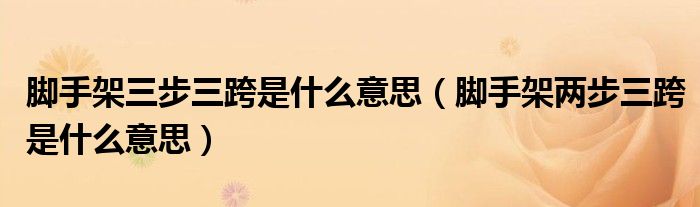 大家好,小生來為大家講解下。腳手架三步三跨是什么意思,腳手架兩步三跨是什么意思很多人還不知道,現(xiàn)在讓我們一起來看看吧!