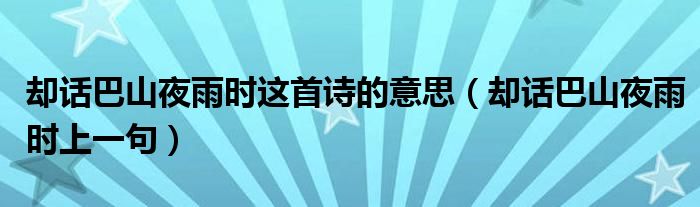 大家好,小生來為大家講解下。卻話巴山夜雨時這首詩的意思,卻話巴山夜雨時上一句很多人還不知道,現(xiàn)在讓我們一起來看看吧!