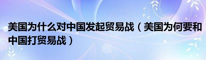 大家好,小生來(lái)為大家講解下。美國(guó)為什么對(duì)中國(guó)發(fā)起貿(mào)易戰(zhàn),美國(guó)為何要和中國(guó)打貿(mào)易戰(zhàn)很多人還不知道,現(xiàn)在讓我們一起來(lái)看看吧!