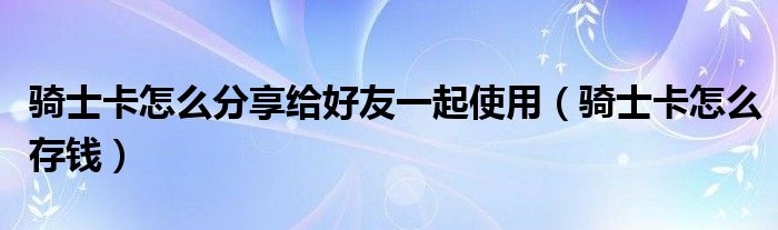 大家好,小生來為大家講解下。騎士卡怎么分享給好友一起使用,騎士卡怎么存錢很多人還不知道,現(xiàn)在讓我們一起來看看吧!