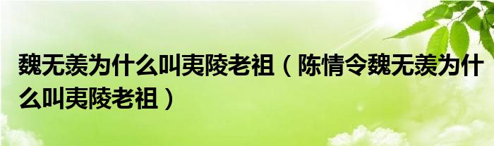 摘要大家好,小生來為大家講解下。魏無羨為什么叫夷陵老祖,陳情令魏無羨為什么叫夷陵老祖很多人還不知道,現(xiàn)在讓我們一起來看看吧!1、魏武賢