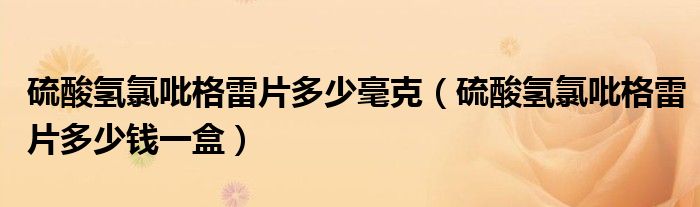 大家好,知識小編來為大家解答以上的問題。硫酸氫氯吡格雷片多少毫克,硫酸氫氯吡格雷片多少錢一盒很多人還不知道,現(xiàn)在讓我們一起來看看吧!