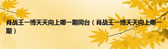 大家好,小生來為大家講解下。肖戰(zhàn)王一博天天向上哪一期同臺,肖戰(zhàn)王一博天天向上哪一期很多人還不知道,現(xiàn)在讓我們一起來看看吧!