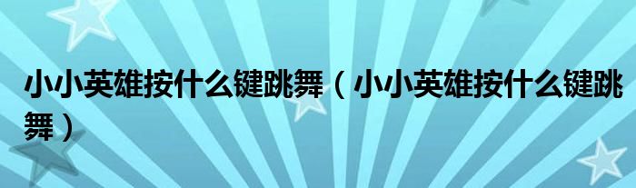 大家好,小生來(lái)為大家講解下。小小英雄按什么鍵跳舞,小小英雄按什么鍵跳舞很多人還不知道,現(xiàn)在讓我們一起來(lái)看看吧!