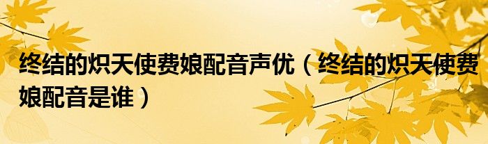 大家好,小生來(lái)為大家講解下。終結(jié)的熾天使費(fèi)娘配音聲優(yōu),終結(jié)的熾天使費(fèi)娘配音是誰(shuí)很多人還不知道,現(xiàn)在讓我們一起來(lái)看看吧!