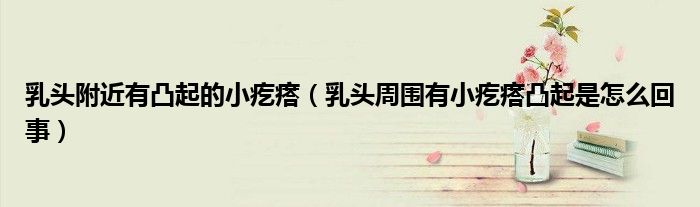 摘要大家好,知識小編來為大家解答以上的問題。乳頭附近有凸起的小疙瘩,乳頭周圍有小疙瘩凸起是怎么回事很多人還不知道,現(xiàn)在讓我們一起來看看