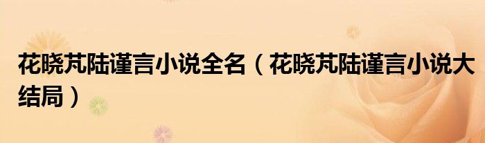 大家好,小生來(lái)為大家講解下?;〞云M陸謹(jǐn)言小說(shuō)全名,花曉芃陸謹(jǐn)言小說(shuō)大結(jié)局很多人還不知道,現(xiàn)在讓我們一起來(lái)看看吧!