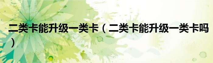 大家好,小生來為大家講解下。二類卡能升級(jí)一類卡,二類卡能升級(jí)一類卡嗎很多人還不知道,現(xiàn)在讓我們一起來看看吧!