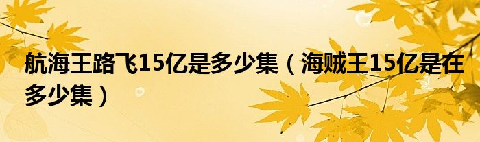 大家好,小生來為大家講解下。航海王路飛15億是多少集,海賊王15億是在多少集很多人還不知道,現(xiàn)在讓我們一起來看看吧!