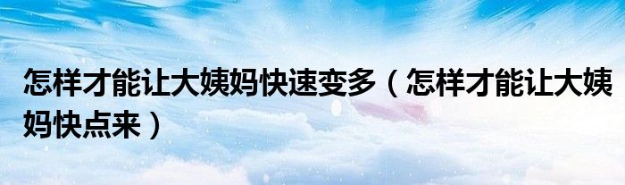 大家好,知識(shí)小編來為大家解答以上的問題。怎樣才能讓大姨媽快速變多,怎樣才能讓大姨媽快點(diǎn)來很多人還不知道,現(xiàn)在讓我們一起來看看吧!