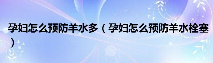 大家好,知識(shí)小編來為大家解答以上的問題。孕婦怎么預(yù)防羊水多,孕婦怎么預(yù)防羊水栓塞很多人還不知道,現(xiàn)在讓我們一起來看看吧!
