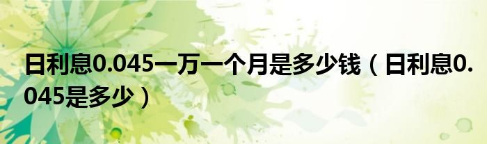 大家好,小生來為大家講解下。日利息0.045一萬一個(gè)月是多少錢,日利息0.045是多少很多人還不知道,現(xiàn)在讓我們一起來看看吧!