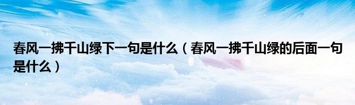大家好,小生來為大家講解下。春風一拂千山綠下一句是什么,春風一拂千山綠的后面一句是什么很多人還不知道,現(xiàn)在讓我們一起來看看吧!