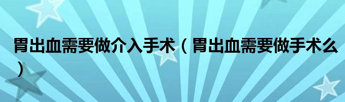 大家好,知識小編來為大家解答以上的問題。胃出血需要做介入手術,胃出血需要做手術么很多人還不知道,現在讓我們一起來看看吧!