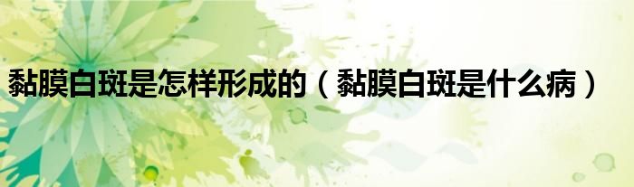 大家好,知識小編來為大家解答以上的問題。黏膜白斑是怎樣形成的,黏膜白斑是什么病很多人還不知道,現(xiàn)在讓我們一起來看看吧!