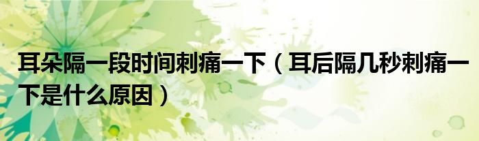 大家好,知識(shí)小編來為大家解答以上的問題。耳朵隔一段時(shí)間刺痛一下,耳后隔幾秒刺痛一下是什么原因很多人還不知道,現(xiàn)在讓我們一起來看看吧!