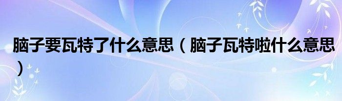 大家好,小生來為大家講解下。腦子要瓦特了什么意思,腦子瓦特啦什么意思很多人還不知道,現(xiàn)在讓我們一起來看看吧!