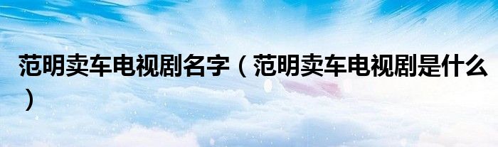 大家好,小生來為大家講解下。范明賣車電視劇名字,范明賣車電視劇是什么很多人還不知道,現(xiàn)在讓我們一起來看看吧!