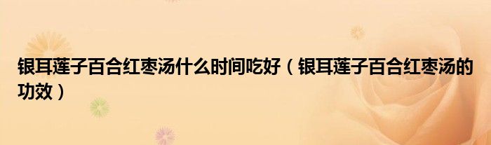 大家好,知識(shí)小編來(lái)為大家解答以上的問(wèn)題。銀耳蓮子百合紅棗湯什么時(shí)間吃好,銀耳蓮子百合紅棗湯的功效很多人還不知道,現(xiàn)在讓我們一起來(lái)看看吧!