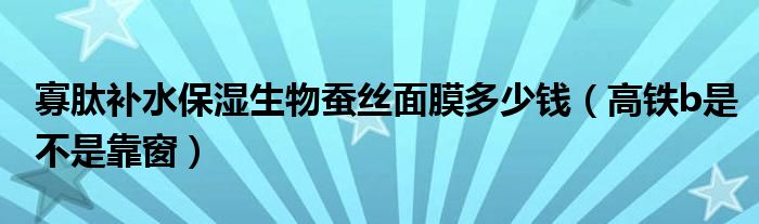 大家好,小生來為大家講解下。寡肽補(bǔ)水保濕生物蠶絲面膜多少錢,高鐵b是不是靠窗很多人還不知道,現(xiàn)在讓我們一起來看看吧!