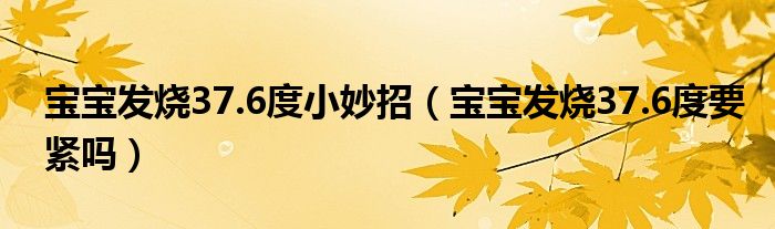 摘要 大家好,知識小編來為大家解答以上的問題。寶寶發(fā)燒37 6度小妙招,寶寶發(fā)燒37 6度要緊嗎很多人還不知道,現(xiàn)在讓我們一起來看看吧!發(fā)燒37 6