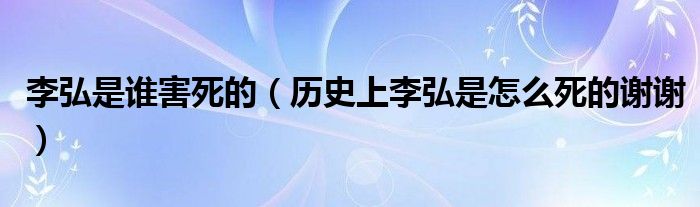 大家好,小生來為大家講解下。李弘是誰害死的,歷史上李弘是怎么死的謝謝很多人還不知道,現(xiàn)在讓我們一起來看看吧!