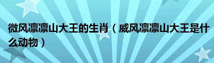 大家好,小生來為大家講解下。微風(fēng)凜凜山大王的生肖,威風(fēng)凜凜山大王是什么動物很多人還不知道,現(xiàn)在讓我們一起來看看吧!