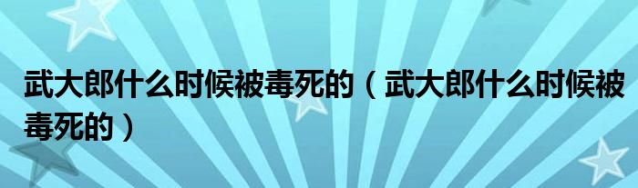 摘要大家好,小生來為大家講解下。武大郎什么時候被毒死的,武大郎什么時候被毒死的很多人還不知道,現(xiàn)在讓我們一起來看看吧!1、武大郎是在農(nóng)