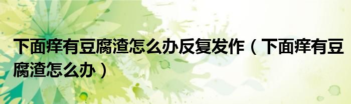 大家好,知識(shí)小編來為大家解答以上的問題。下面癢有豆腐渣怎么辦反復(fù)發(fā)作,下面癢有豆腐渣怎么辦很多人還不知道,現(xiàn)在讓我們一起來看看吧!