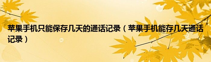 大家好,小生來為大家講解下。蘋果手機(jī)只能保存幾天的通話記錄,蘋果手機(jī)能存幾天通話記錄很多人還不知道,現(xiàn)在讓我們一起來看看吧!