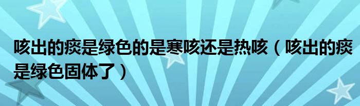 大家好,知識(shí)小編來為大家解答以上的問題??瘸龅奶凳蔷G色的是寒咳還是熱咳,咳出的痰是綠色固體了很多人還不知道,現(xiàn)在讓我們一起來看看吧!