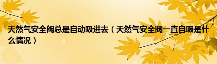 大家好,小生來(lái)為大家講解下。天然氣安全閥總是自動(dòng)吸進(jìn)去,天然氣安全閥一直自吸是什么情況很多人還不知道,現(xiàn)在讓我們一起來(lái)看看吧!