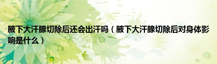 摘要大家好,知識小編來為大家解答以上的問題。腋下大汗腺切除后還會出汗嗎,腋下大汗腺切除后對身體影響是什么很多人還不知道,現(xiàn)在讓我們一起