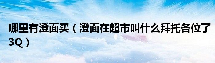 大家好,小生來(lái)為大家講解下。哪里有澄面買,澄面在超市叫什么拜托各位了3Q很多人還不知道,現(xiàn)在讓我們一起來(lái)看看吧!