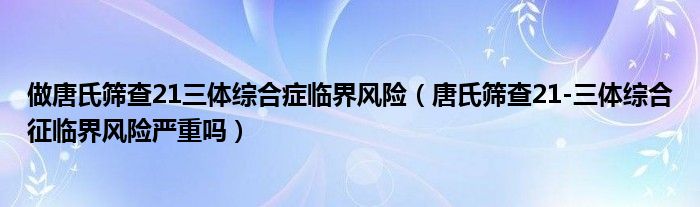 大家好,知識小編來為大家解答以上的問題。做唐氏篩查21三體綜合癥臨界風(fēng)險,唐氏篩查21-三體綜合征臨界風(fēng)險嚴重嗎很多人還不知道,現(xiàn)在讓我們一起來看看吧!
