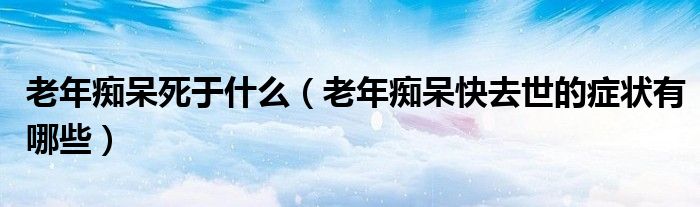 摘要大家好,知識(shí)小編來(lái)為大家解答以上的問(wèn)題。老年癡呆死于什么,老年癡呆快去世的癥狀有哪些很多人還不知道,現(xiàn)在讓我們一起來(lái)看看吧!正在死