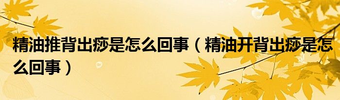 摘要大家好,知識小編來為大家解答以上的問題。精油推背出痧是怎么回事,精油開背出痧是怎么回事很多人還不知道,現(xiàn)在讓我們一起來看看吧!用精